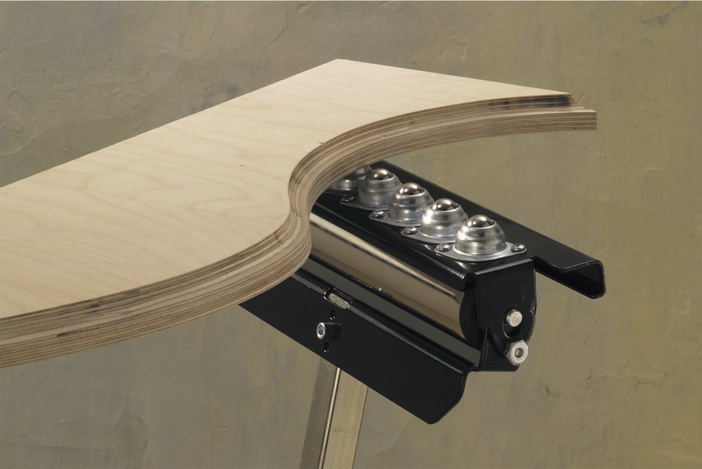 Využitelný pro všechny obvyklé strojní a dílenské stoly, k uložení a odvalování dlouhých prken, palubek a desek, pevná podložka slouží jako prodloužení opěrné plochy pracovního stolu a jako upevnění dlouhých obrobků, uložený podpěrný váleček umožňuje snadný přísun materiálu ve směru zpracování, kulové uložení umožňuje jednoduché přivedení a pohyb obrobku všemi směry, např: při frézování, sklápěcí pro místo šetřící uložení.
