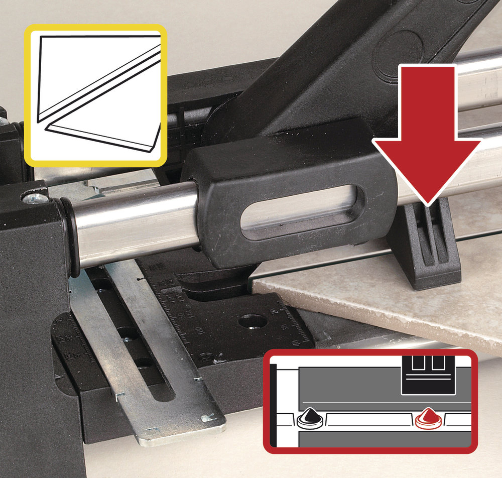 Perfektni řešení pro perfektní řez od německé značky Wolfcraft. lehké řezání: klouzavý a lehký pohyb při řezání lehké zlomení: pomocí dvou kuželů (při 45° a 90°) přesné provedení nenáročné na údržbu díky plastovým kluzným ložiskům a oválným kolejnicím stabilní a pevná základní deska z hliníkového profilu volný výhled na postup řezání vhodné pro praváky i leváky řezací kolečko z karbidu wolframu (HM) TIN, prum. 15 mm, vrtání 6,1 mm řezná délka: 600 mm tloušťka dlaždic: 4-10 mm včetně: 1 x lišta s dorazy, na opakované a diagonální řezy 2 x přídavný nástavec, nasaditelný na základní desku