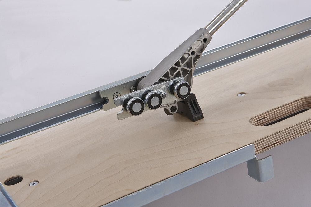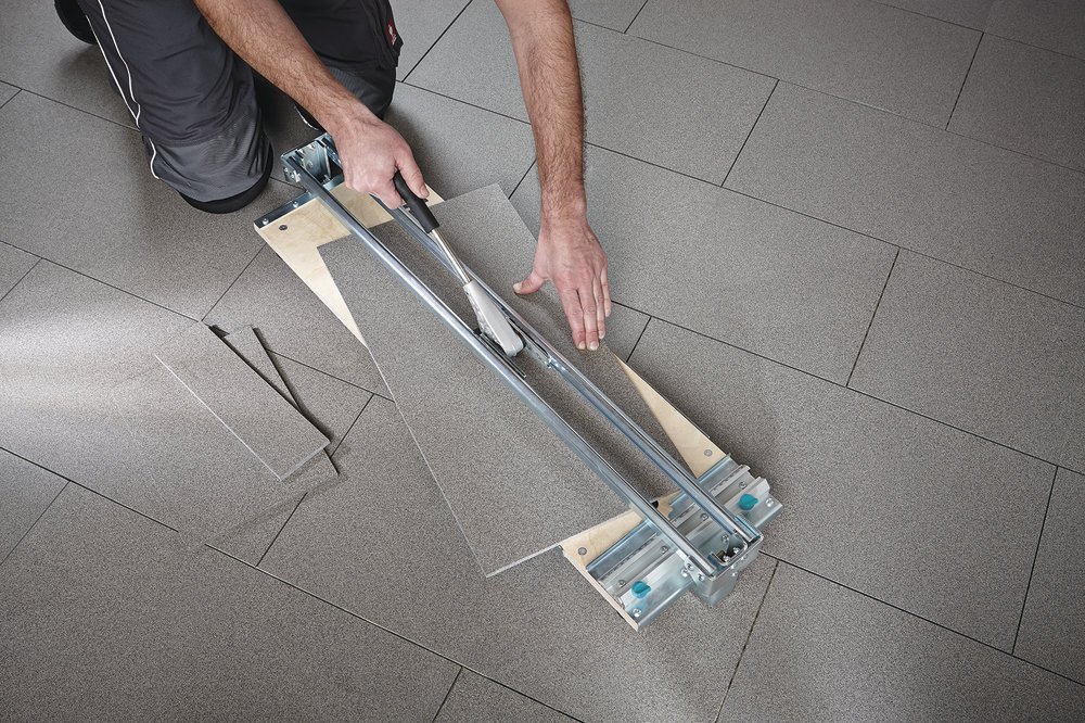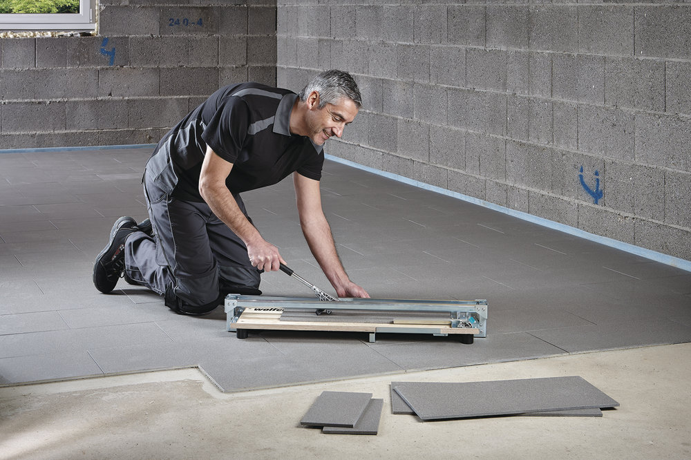Perfektni řešení pro perfektní řez od německé značky Wolfcraft. Řezání a lámání dlaždic tradičním způsobem těžké, masivní a stabilní provedení základová deska vyrobená z 18 mm multiplexu hladké, čisté řezy díky kruhovému noži s průměrem 20 mm a vedení s C-profilem a s bezúdržbovým kuličkovým ložiskem při pracích na základové desce lze vysunout pohyblivý klín pro odlamování dlaždic řezná délka: 710 mm tloušťka dlaždic: 3-14 mm včetně: 1 x vodicí lišta s úhlovým dorazem, na opakované a diagonální řezy 1 x řezací kolečko z karbidu wolframu (HM), prum. 20 mm, vrtání 5 mm