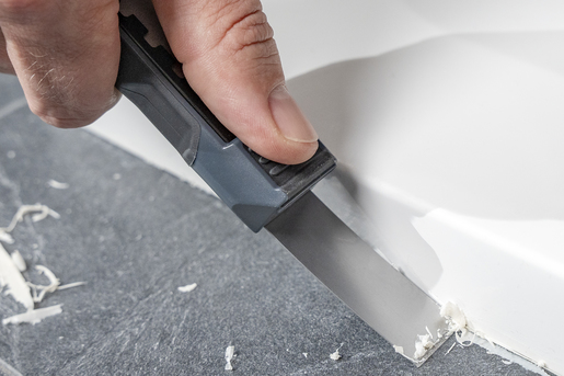 včetně čelně zbroušené škrabkové čepele (18 mm) na odstraňování zbytků silikonu