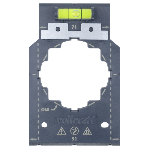 Pomocí vodováhy lze šablonu spolehlivě vyrovnat pro přesné vyznačení polohy vrtání. A později, když je třeba vyrovnat instalační krabice a vložky, vám šablona pomůže s jejich přesným umístěním.