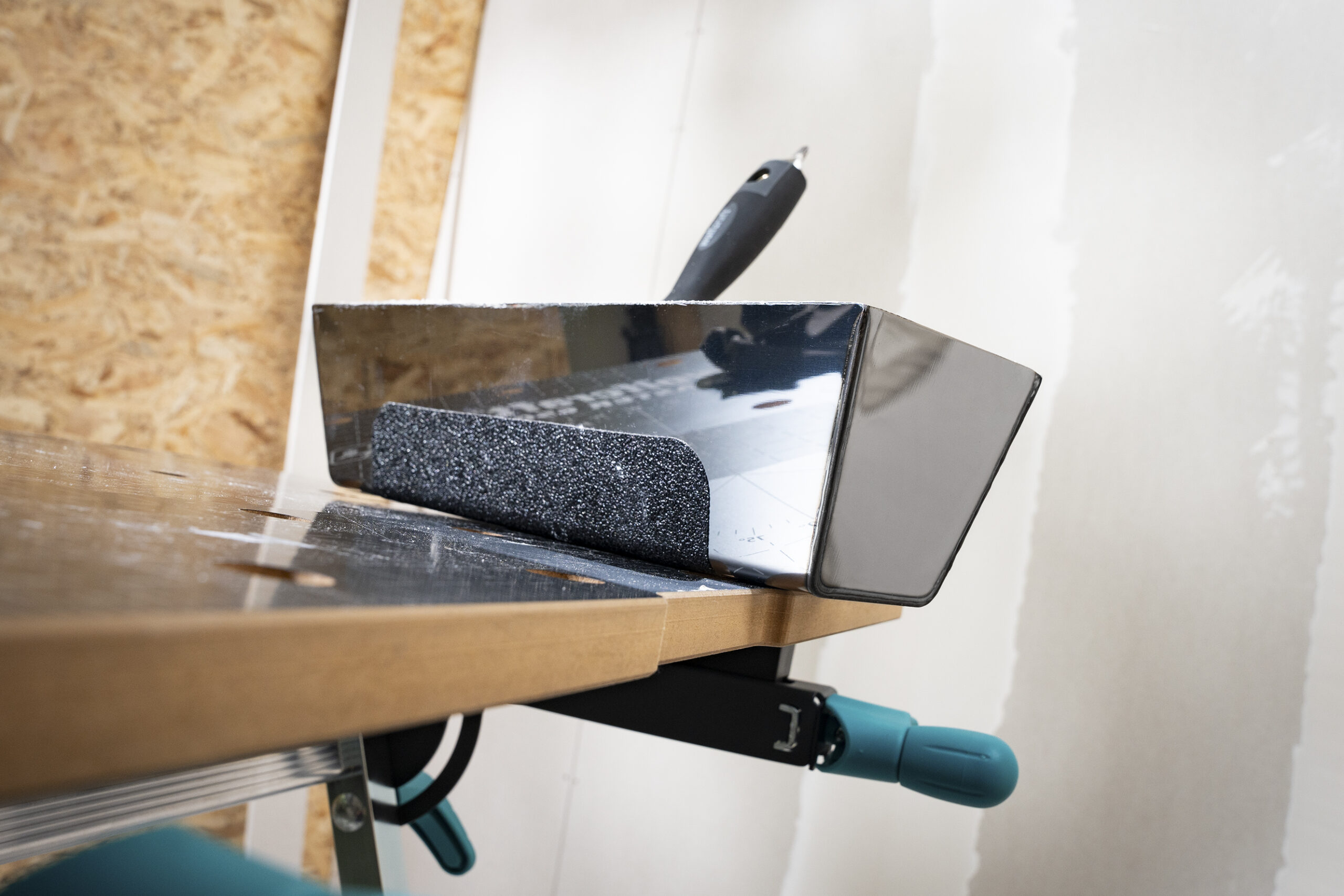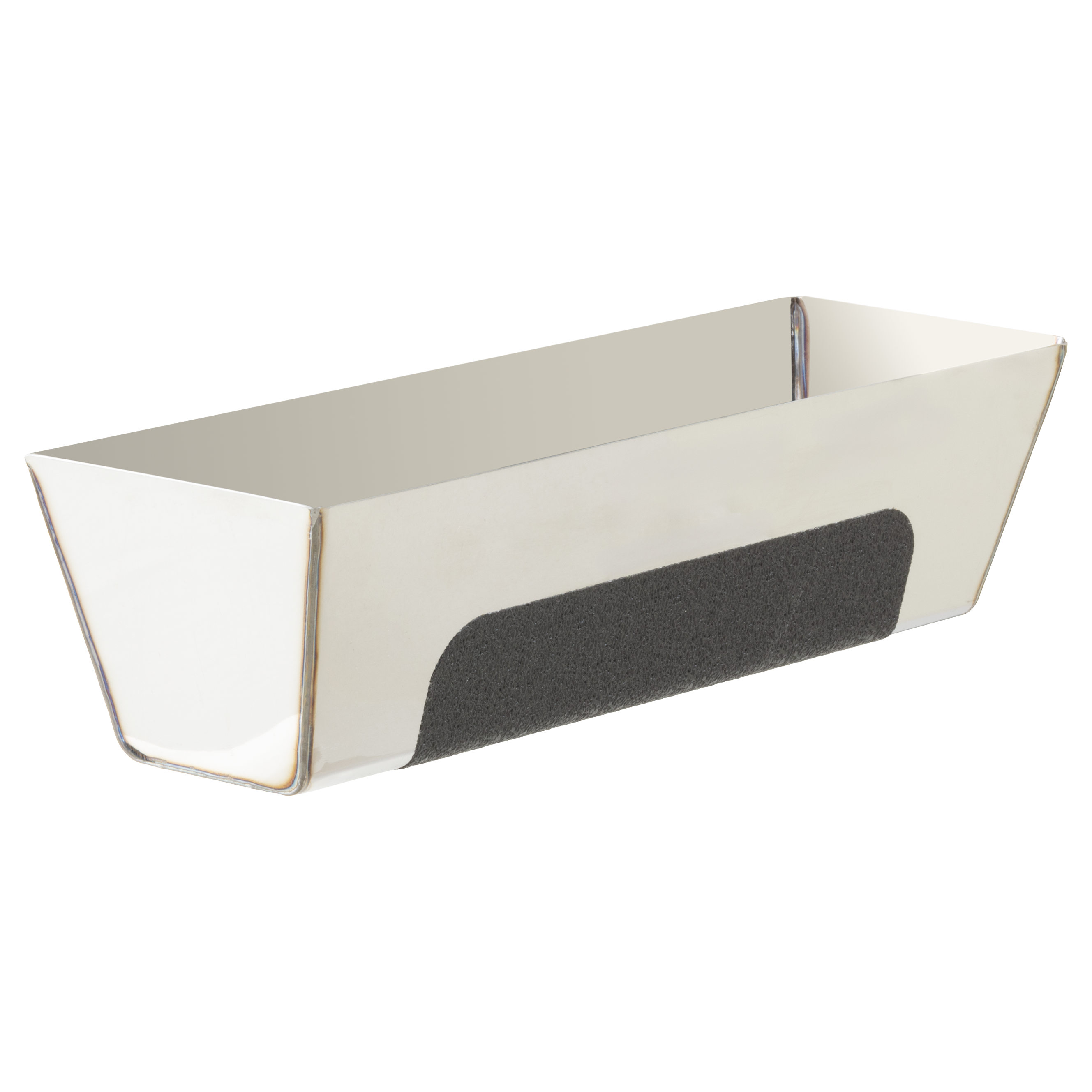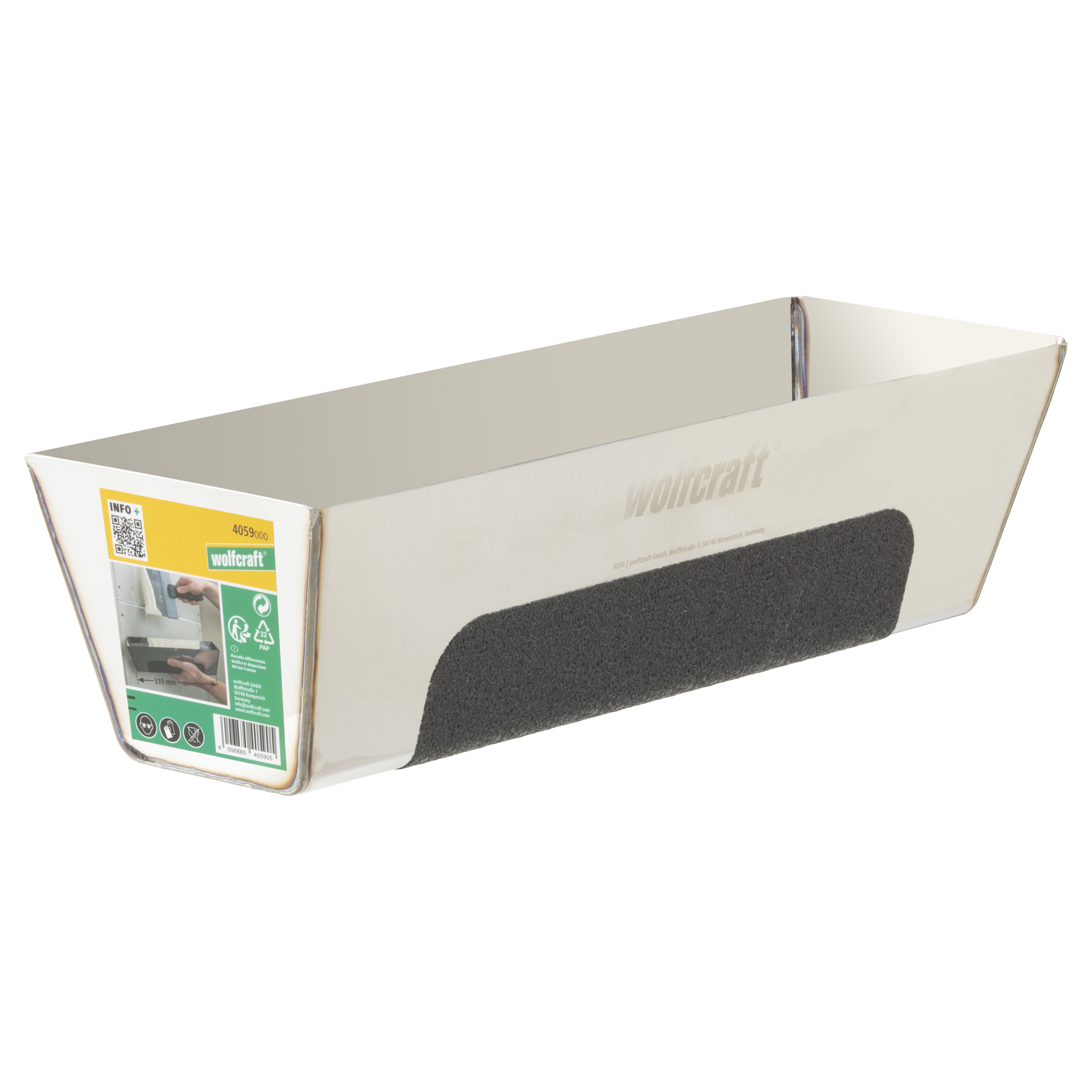 Vanička na tmel je praktickým pomocníkem pro pohodlné a efektivní tmelení. S kapacitou až 2 000 ml se ideálně hodí na spárování v suchých výstavbách. Její rovné horní hrany umožňují čisté otírání špachtle. Díky lichoběžníkovému tvaru a protiskluzové úchopové zóně se přitom dá vždy držet ergonomicky a spolehlivě pouze jednou rukou. Vanička na tmel je vyrobena z vysoce kvalitní nerezové oceli, která se při odebírání materiálu ani čištění neopotřebovává. Celosvařované a vodotěsné provedení zajišťuje čistou práci. Zaoblené a svařené vnitřní hrany umožňují odebrat veškerý tmel a usnadňují čištění. Díky velkorysé vnitřní délce 315 mm je vanička na tmel vhodná pro použití s téměř všemi běžně dostupnými špachtlemi. Díky robustnímu materiálu a kvalitnímu zpracování si vanička zachovává stálý tvar s vysokou odolností a dlouhou životností.