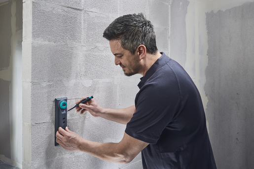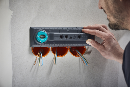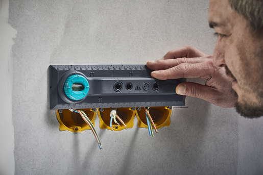 Vyznačení, vyrovnání a vrtací šablona pro instalaci vypínačů a zásuvek. Vrtací souprava „Electrics“ byla vyvinuta speciálně pro rychlou a bezchybnou instalaci elektroinstalačních krabic a souvisejících vložek do cihlových zdí. Volitelně jej lze použít také pro instalace do sádrokartonových desek.